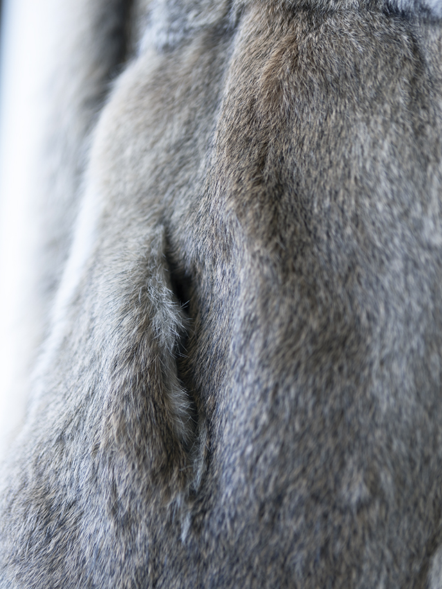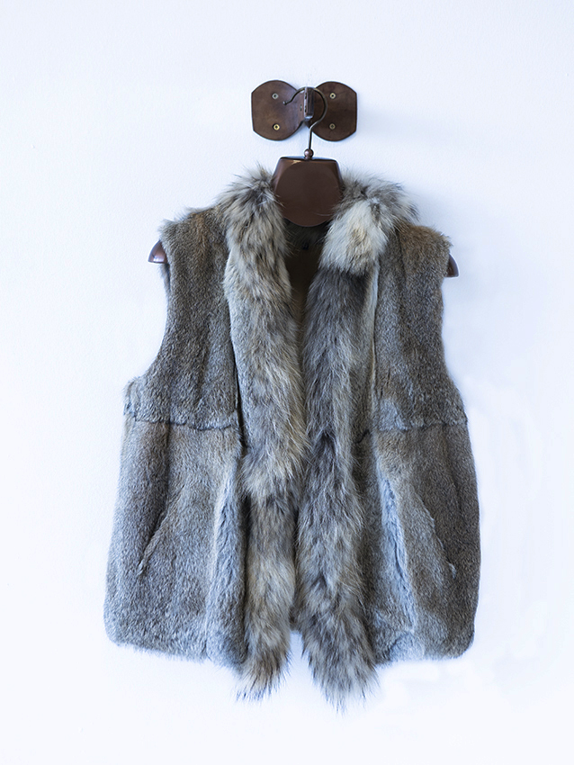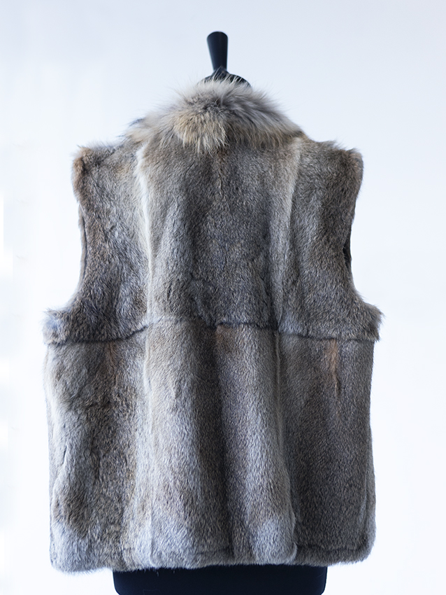 • Chaleco piel conejo natural con vivo y bolsillos de pelo de mapache.