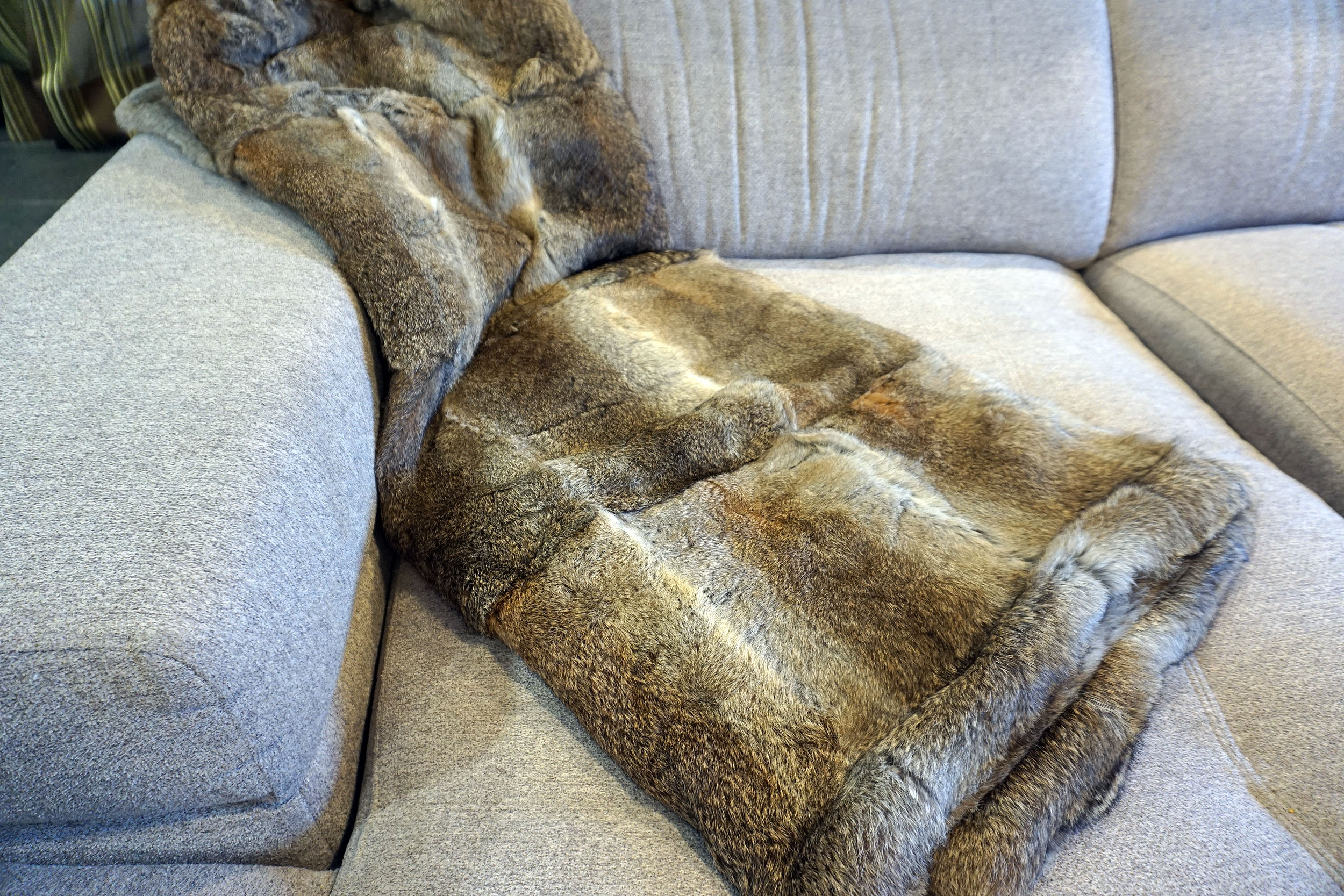 - Manta piel conejo natural forrada en tejido de lana de 180×125 cm. Colores naturales o teñidos.
