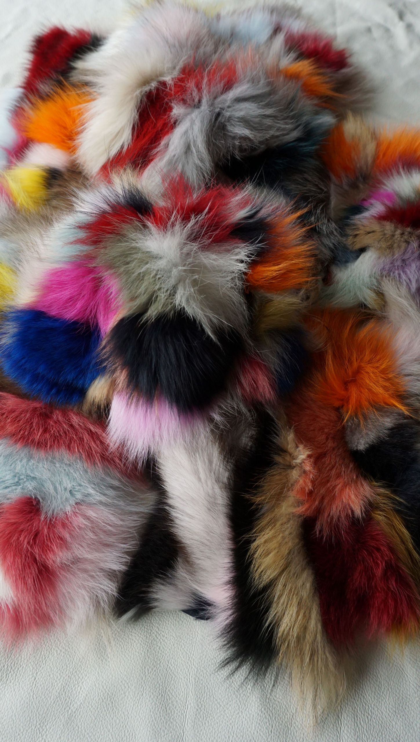 • Los recortas de piel de peletería son unas pedazos cosidos mezclando colorido muy vivo  dando gran vistosidad.